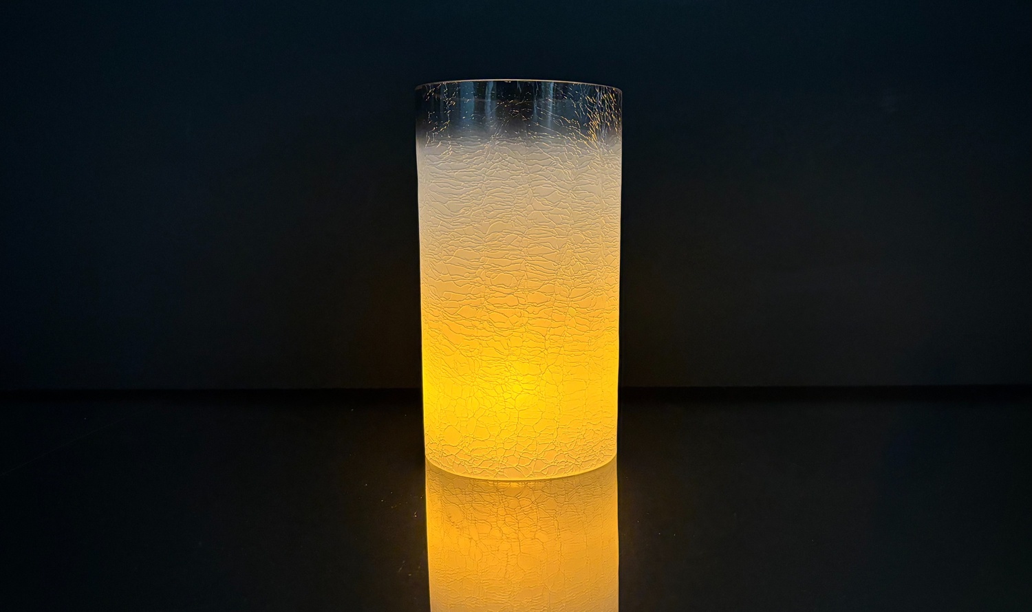 This decorative glass cylider is designed specifically to enhance the glow of the Flame Illusion Modules. As light filters through the textured exterior, it dances within the hollows of the cylinders, casting a soft, diffused glow that evokes the serene ambiance of a moonlit snowscape. Whether displayed as standalone pieces or in groups, they offer a unique blend of artistry and allure that captivates and enchants.