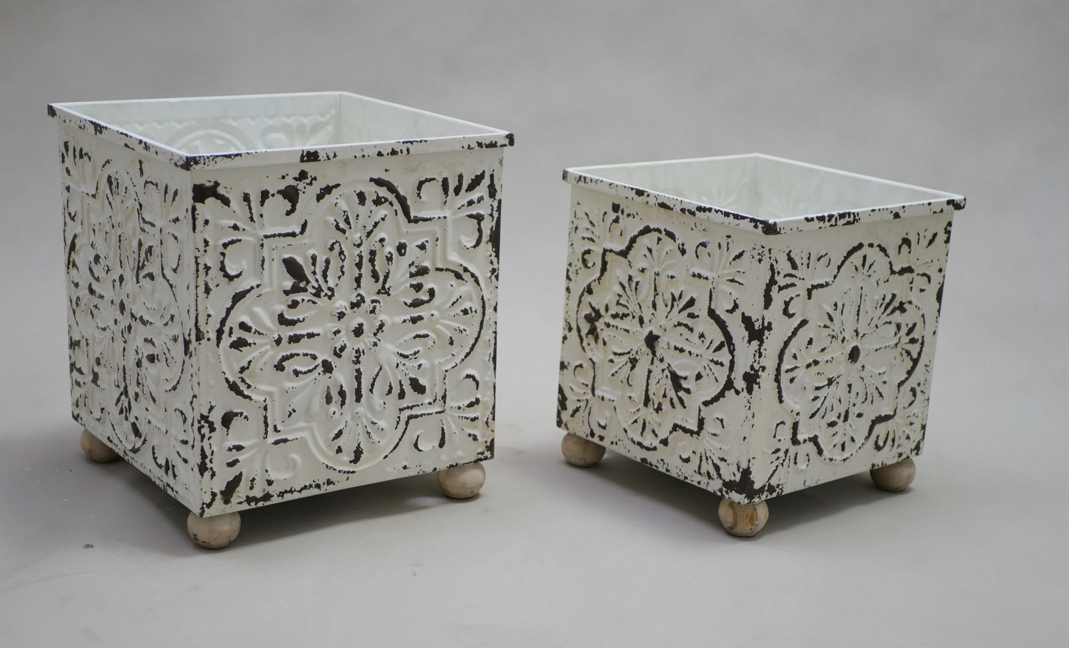 These planters are characterized by their rustic, vintage charm, and are made of galvanized or distressed metal with a weathered finish.
