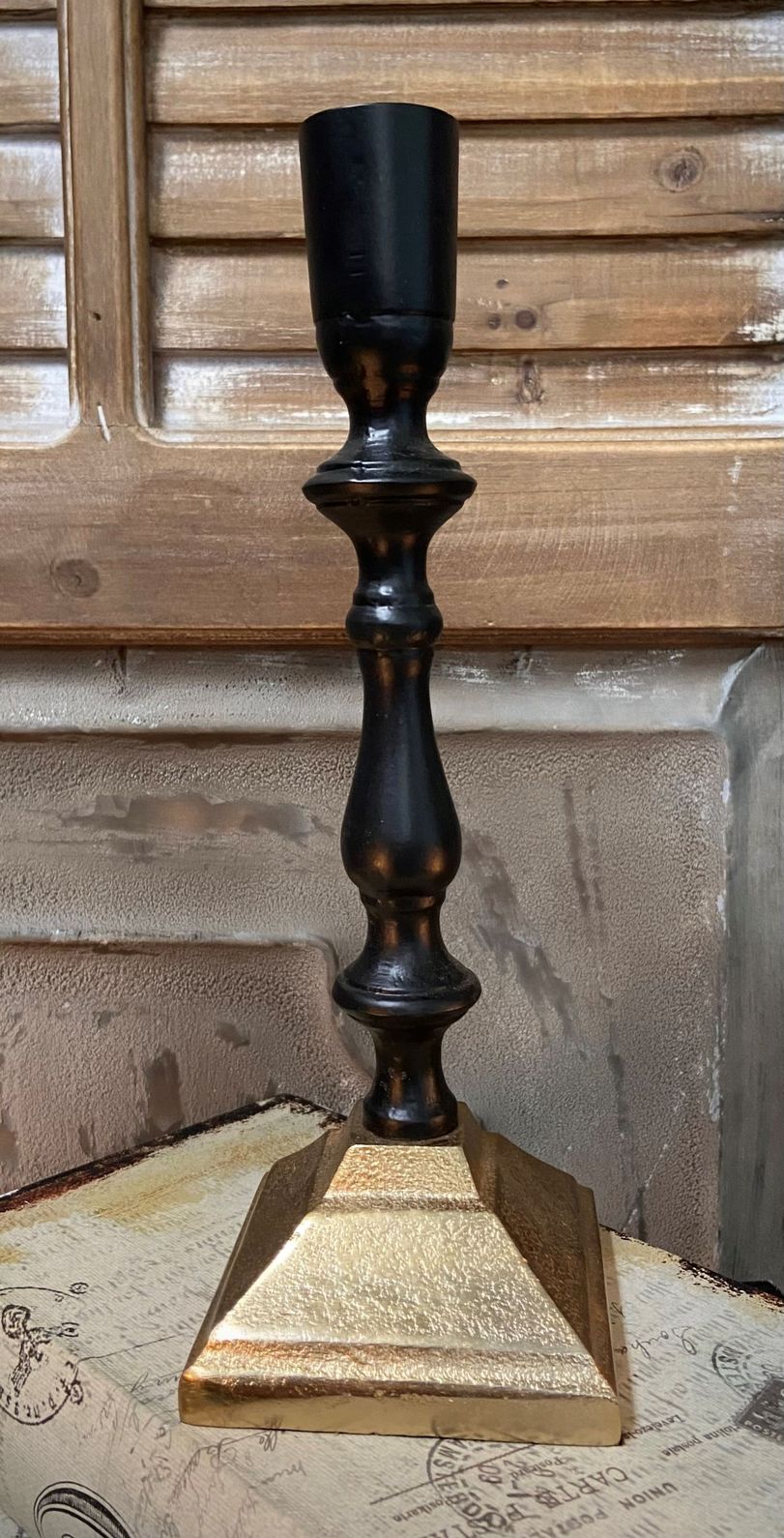 LARGE BLACK AND GOLD CANDLESTICK