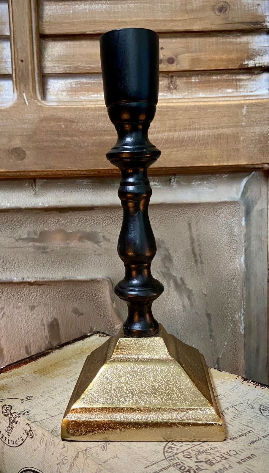SMALL BLACK AND GOLD CANDLESTICK