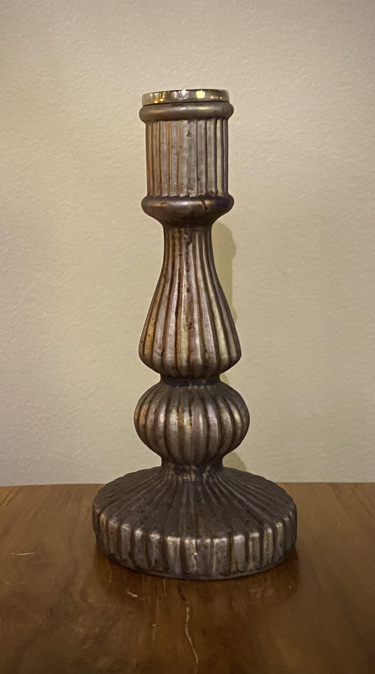 FROSTED GUNMETAL GLASS TAPER HOLDER