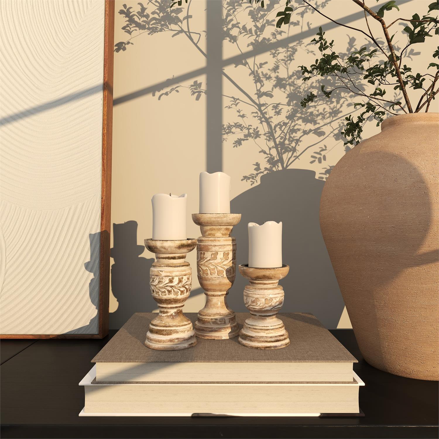 SET OF 3 WOOD CANDLE HOLDER