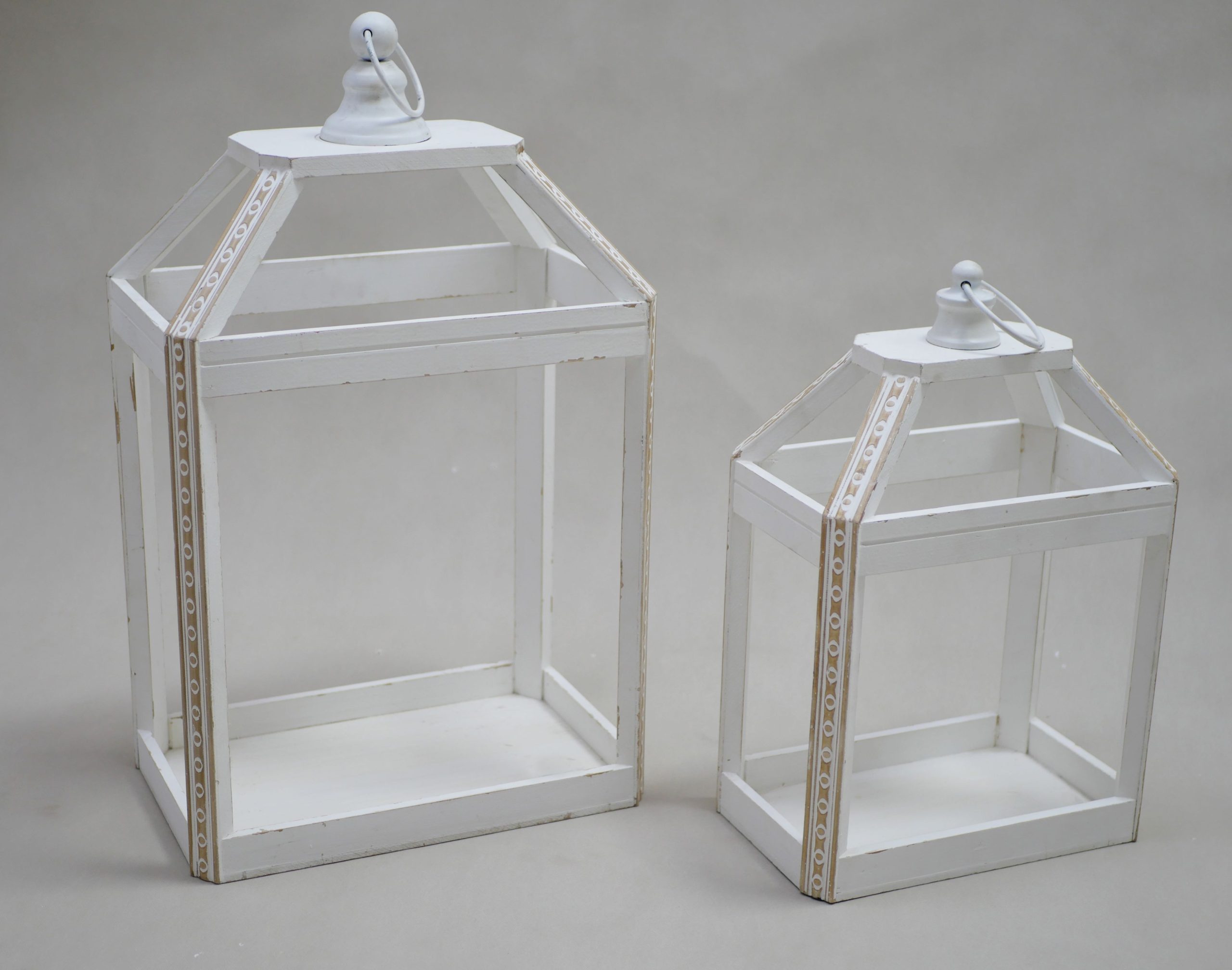 14X20″, 11.5X17.5″ SET OF 2 OPEN WOOD LANTERNS
