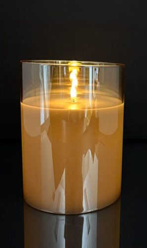 Radiance LED candles are made of 100% paraffin wax, poured into shimmering metallic glass vessels. The LED flame technology creates an incredibly realistic and subtle flicker which glows 250 hours per set of AA batteries. Set the convenient 6 hour reoccurring timer or operate via the optional remote control, sold separately. This Champagne oversized pillar is perfect as a stand alone or grouped together in a stunning display.