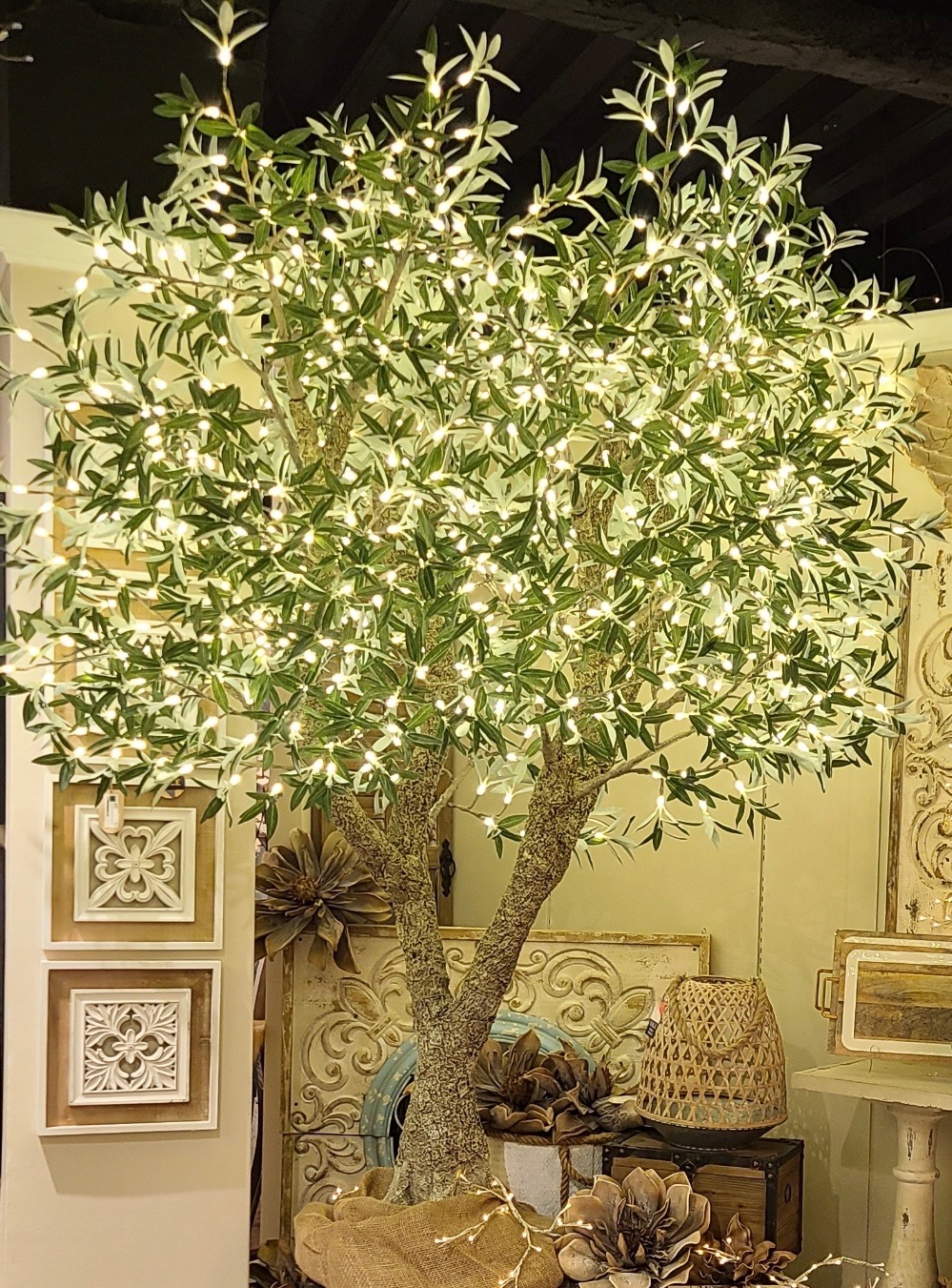 Item: 8′ OLIVE TREE, 870 WARM WHITE LEDS, NATURAL TRUNK