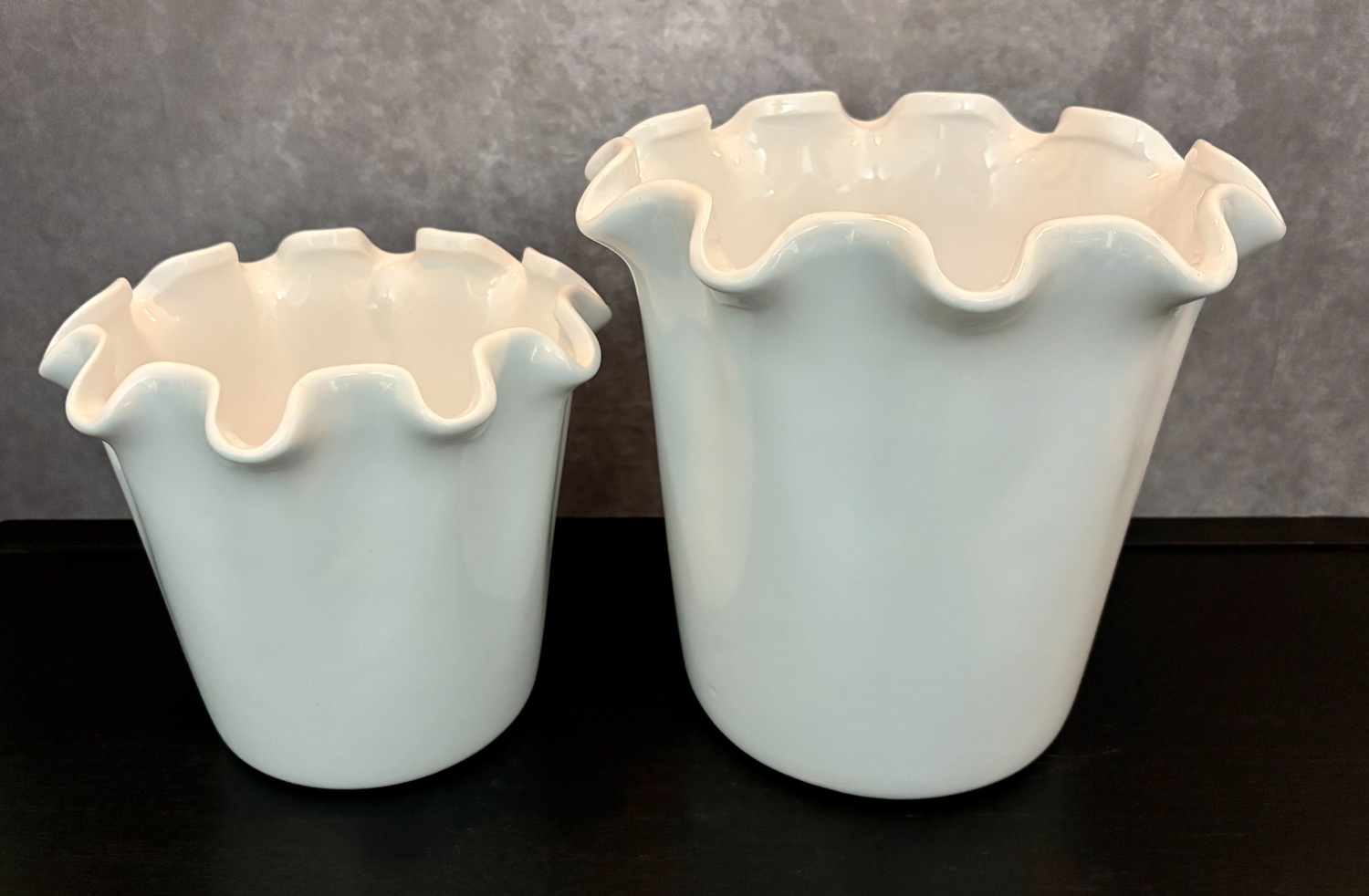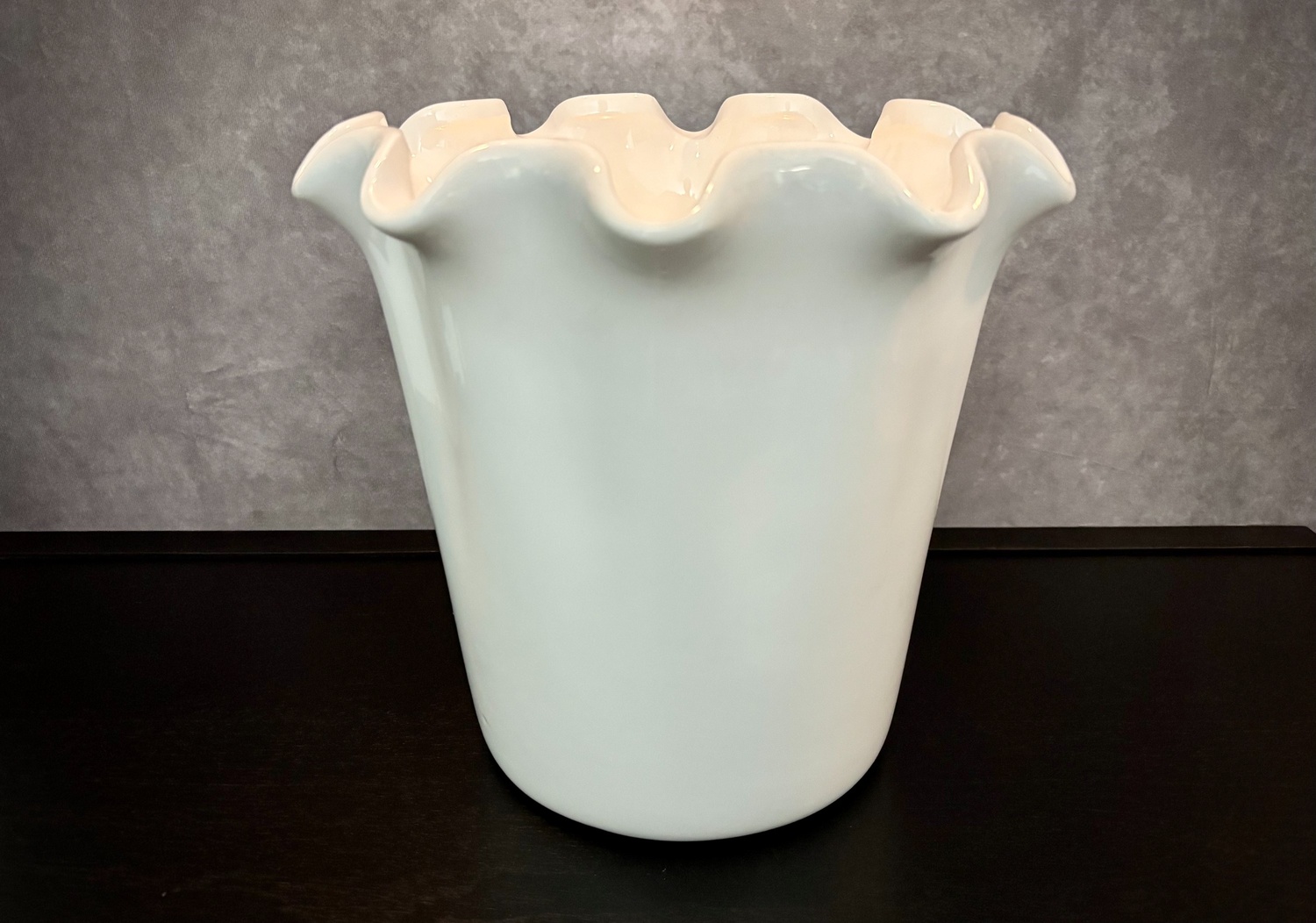 Bring a hint of romance to your space with this beautifully crafted white ceramic vase. The smooth glazed surface and gently ruffled rim evoke the softness of petals in bloom. Ideal for fresh or dried flowers, it’s a graceful accent that complements both modern and vintage-inspired interiors.