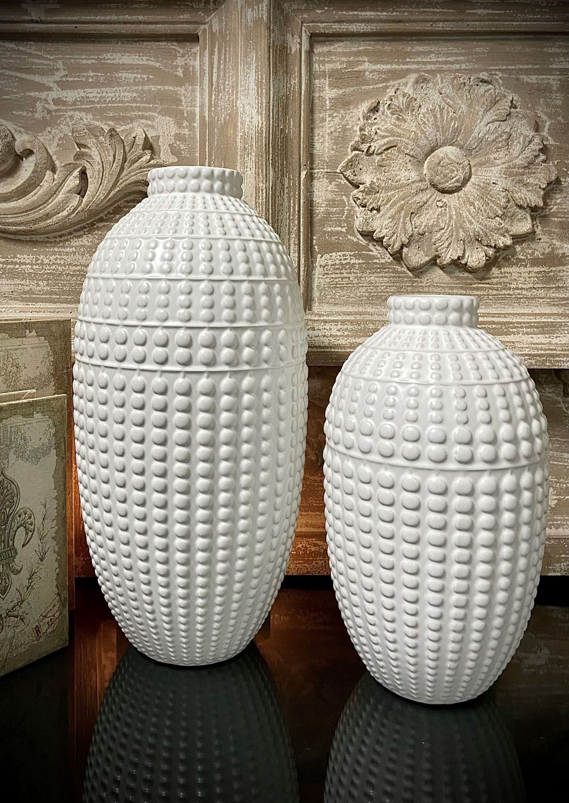 WESTON SET OF 2 WHITE CERAMIC VASES