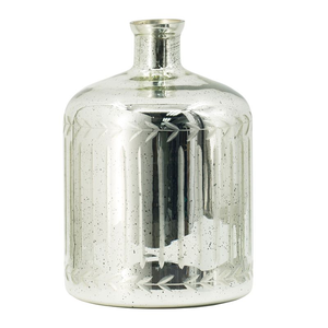 This silver vase with etched detailing is a stunning piece of art. The delicate etching adds intricate detail to this vase. The reflective surface of the silver contrasts beautifully with the etched details, giving it a textured, almost 3D appearance.